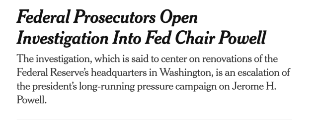 史无前例!美联储主席遭刑事调查,25亿美元翻修案撕开央行独立性之争